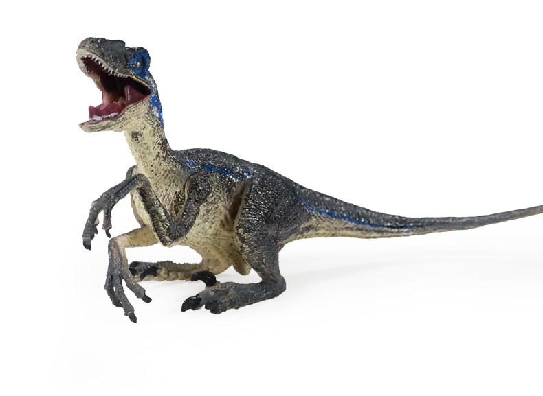 ヴェロキラプトルは、体高1.7m、体長4.5mで体重は136kg。その体の大きさと比べると脳が大きかったため、最も知能の高い恐竜の一種と言われている。陸での動きはすばしっこく足も速い。恐るべき存在であった。2本脚で動きまわり、その速さは自動車と変わらないほどの時速39kmとも言われている。