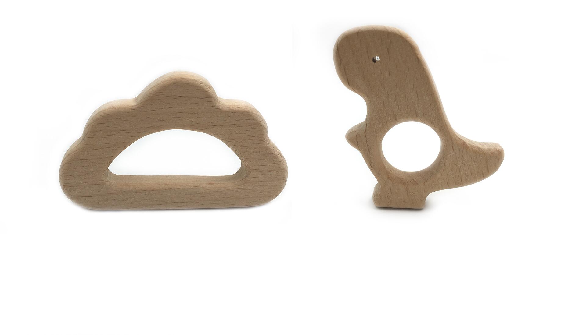 ・恐竜と雲の形をしたカワイイ木製の歯固め。