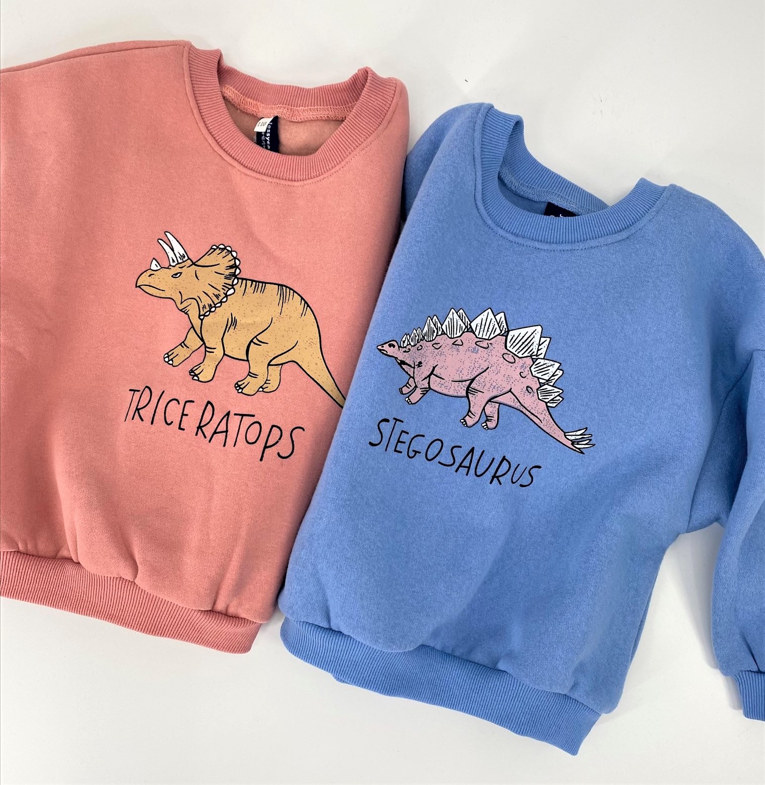 ・超人気の恐竜、ステゴサウルスとトリケラトプスがプリントされたオーバーサイズキッズスウェット♪