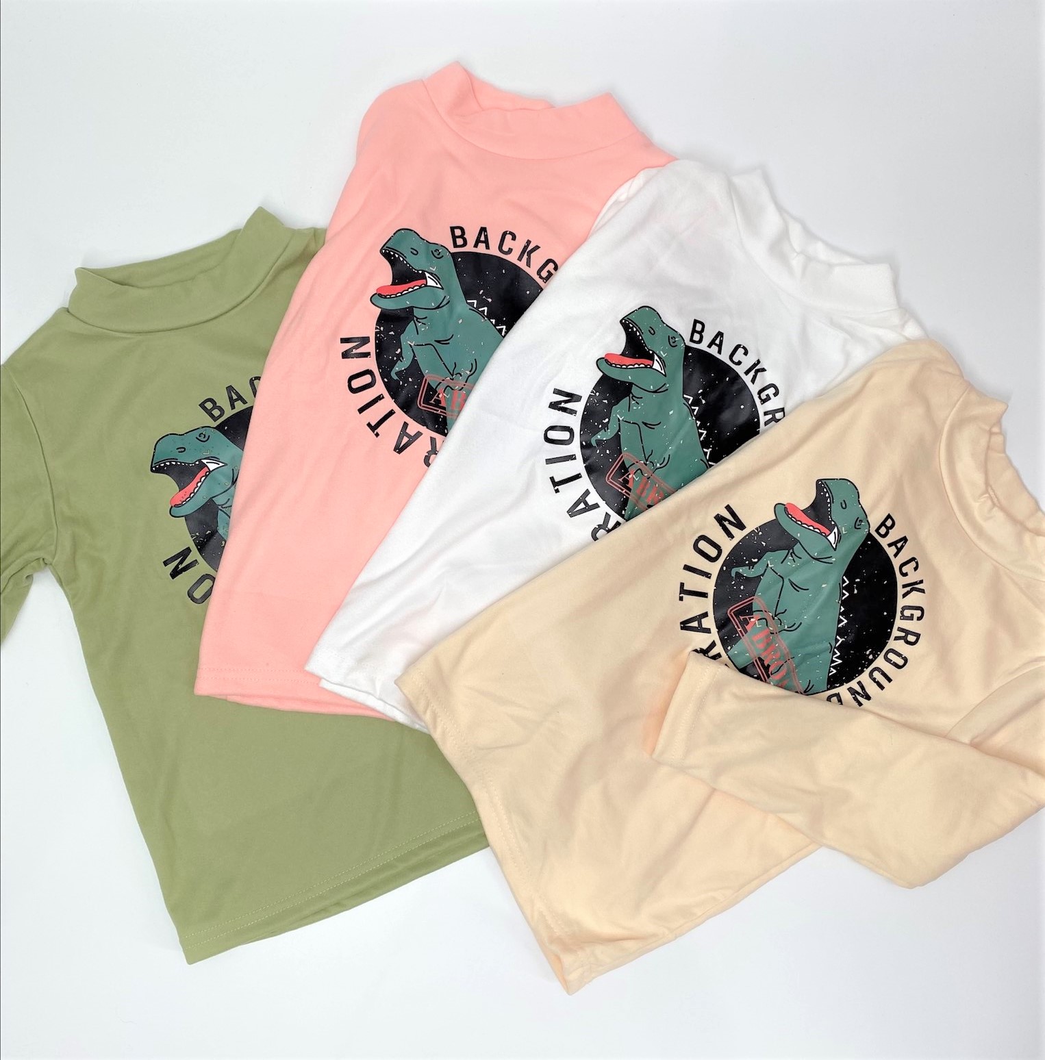 人気ナンバーワンのティラノサウルスのプリントが真っ先に目に入るほどオシャレなフリースの子供用長袖トップス♪ハイネックなので、大人っぽい印象を与えます!男の子でも女の子でも着れる、豊富なカラーバリエーションが嬉しい♪まだ朝晩は肌寒いこの季節に、一着でも持っていると重宝しますよ♪フリースで柔らかくて暖かいので、着心地が良いです!来年の秋冬用に手に入れるのもおススメします♪恐竜好きなお子様やお孫さんへのプレゼントに最適です!