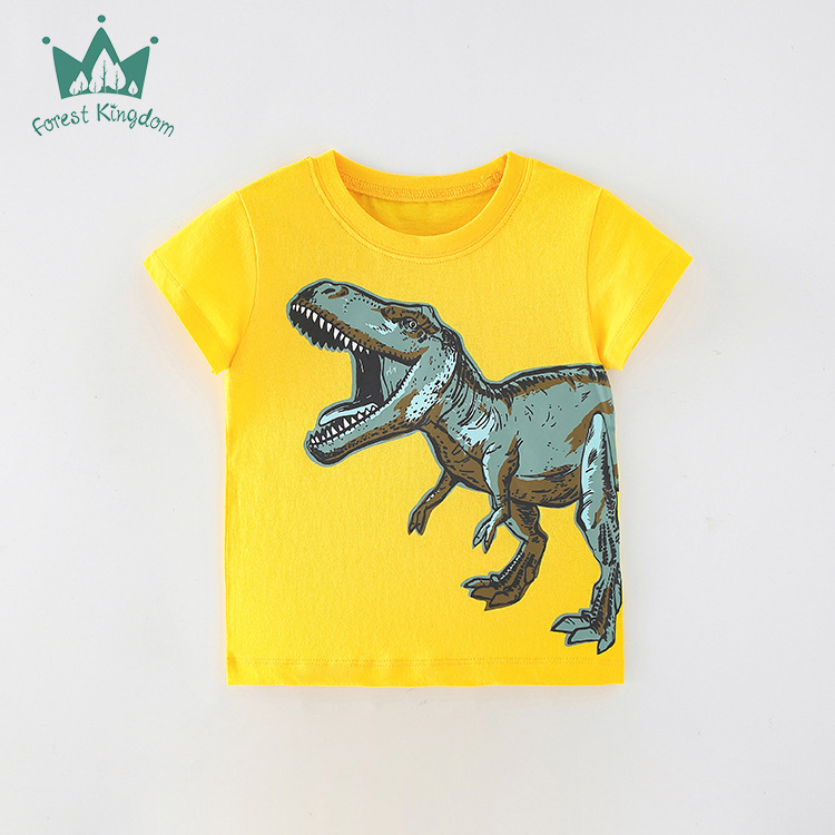 ・大きな恐竜のプリントが目を引く半袖Tシャツ