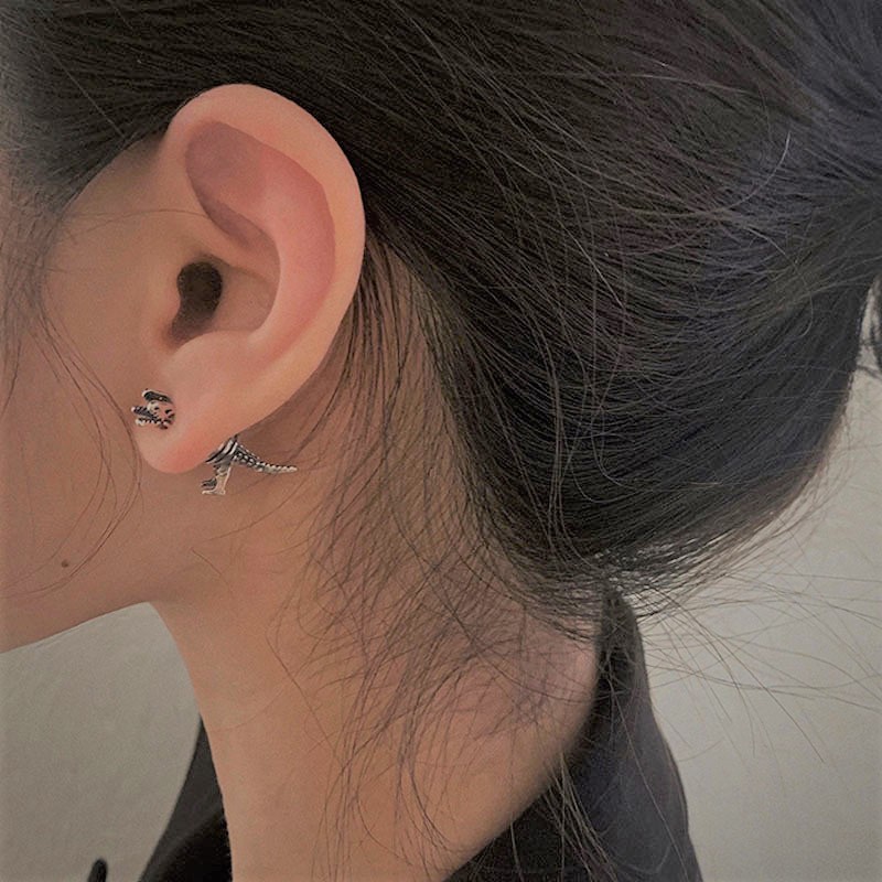 これで誰ともかぶらない!他にはなかなか無いオリジナル感満載のリアルなティラノサウルスのスカルピアス!頭の部分を通すように着けるちょっと変わった面白いデザインとなっております!