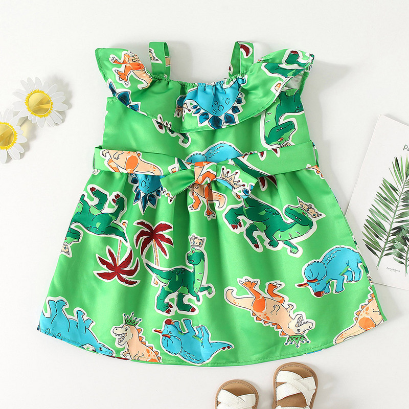 ・ポップカラーで、シュールな恐竜柄キャミワンピース