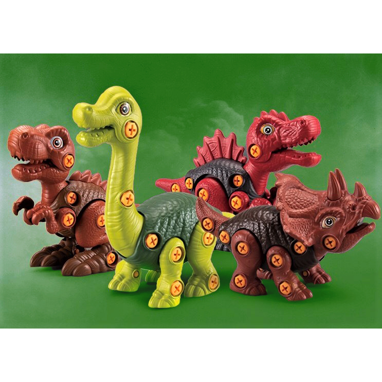 ドライバーとネジを使って、スピノサウルス、ティラノサウルス、トリケラトプス、ブラキオサウルスといった恐竜を組み立てよう!