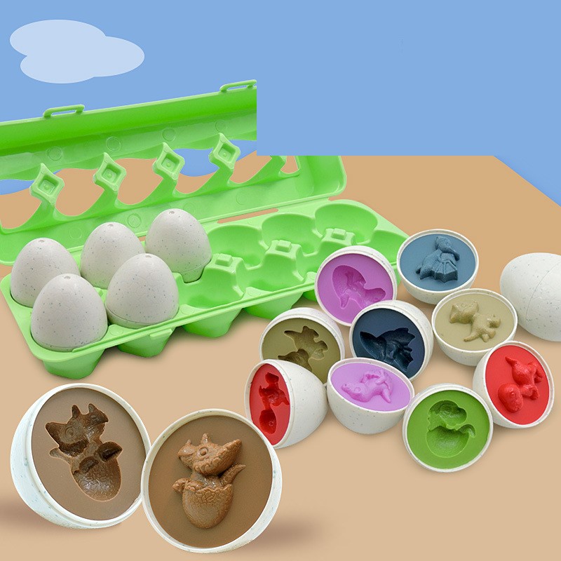 色々な恐竜の形状が12種類あり、バラバラの卵を正しく合わせます。6色に塗り分けられていて色も覚えられる!!