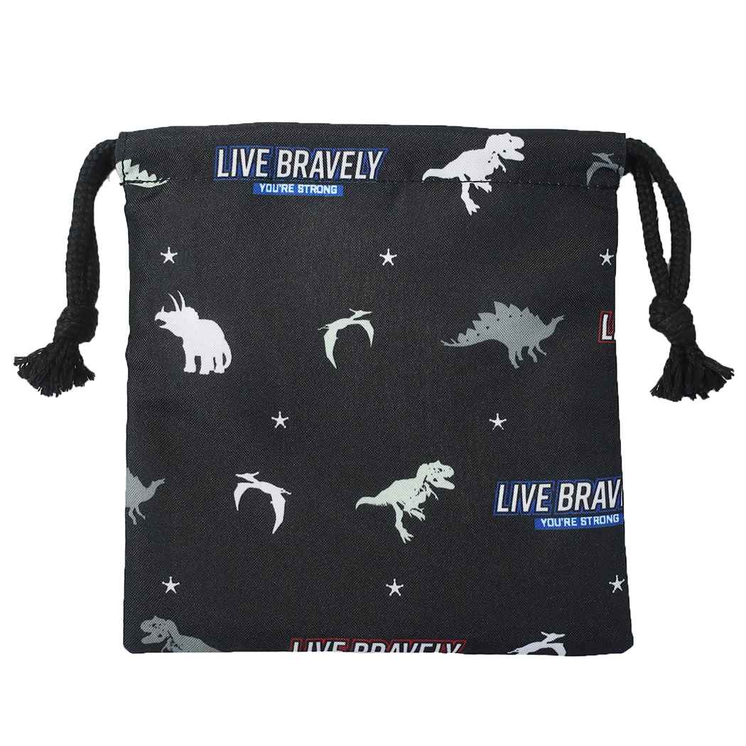 こちらの商品は特に小学生や幼稚園の男の子向け、ブラックのかっこいい恐竜デザインの巾着になります。