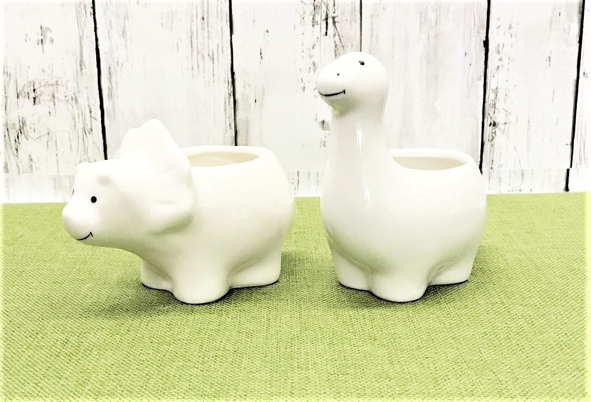 こちらの恐竜デザインの多肉プランターは、トリケラトプスタイプとブラキオサウルスタイプの2種類をご用意しました。