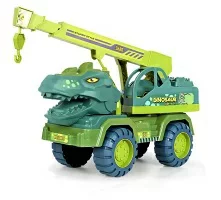 クレーンの吊り上げ部分はスライドします。運転席は本物そっくりに出来ています。ティラノサウルスは約7000万年から6600万年前北アメリカ大陸に生息していた肉食恐竜です。最大全長は約13メートル体重は約9トンと、現在知られている恐竜では最大級の体格を誇る種の1つです。ジュラシックパークの創作恐竜のモデルとしても知られています。 そんな特徴を持つ恐竜のクレーン車ですが働く車として他の車と組み合わせて遊んだり恐竜のいた頃を思い起こして他のフィギュアなど戦わせたりして遊ぶことができます。