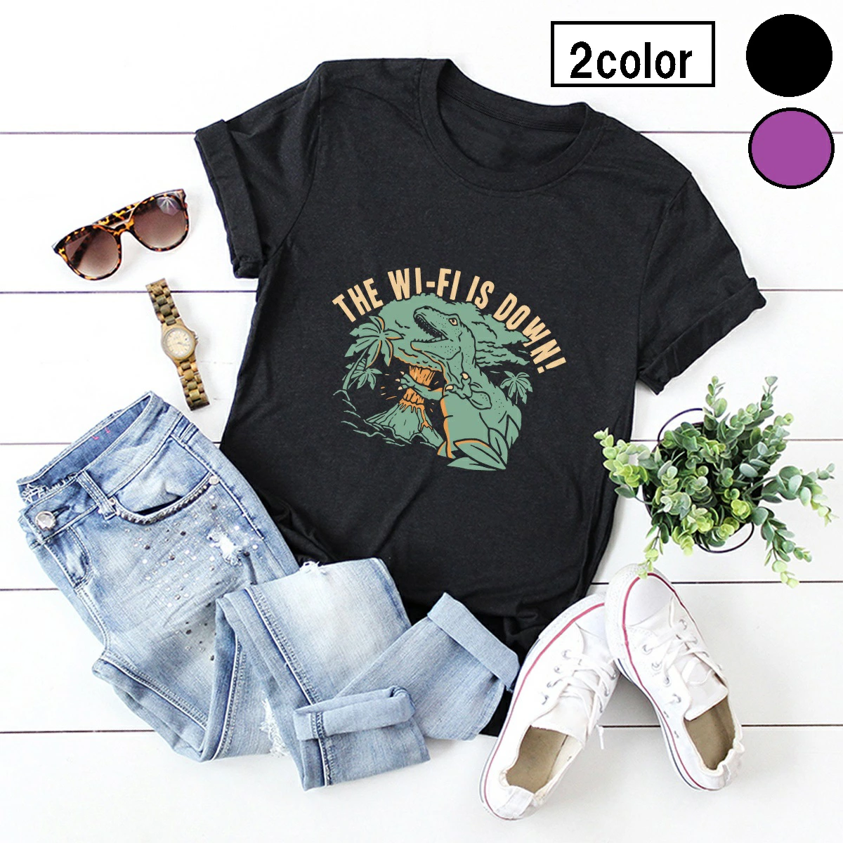 この恐竜ファッション Tシャツは、ゆったりと着こなせるレディース向けデザインです。
