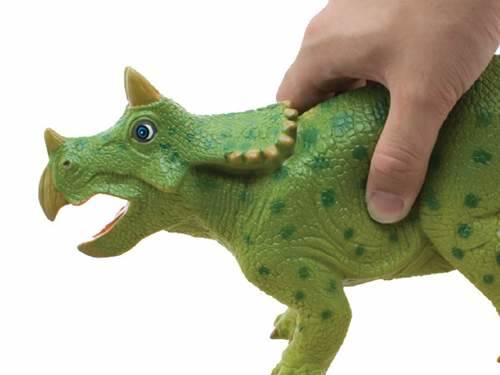 白亜紀の植物食恐竜「トリケラトプス」の幼体をモチーフにしたこのソフトフィギュアは、リアルな造形と優しいソフト素材が特徴です。