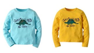 商品紹介 スポーツをする恐竜が個性的♪前後に恐竜がプリントされたTシャツ