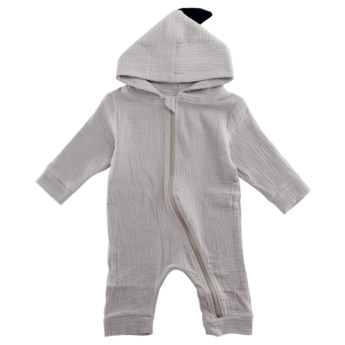 背中のトゲトゲがついた落ち着いた色のロンパースです♪
