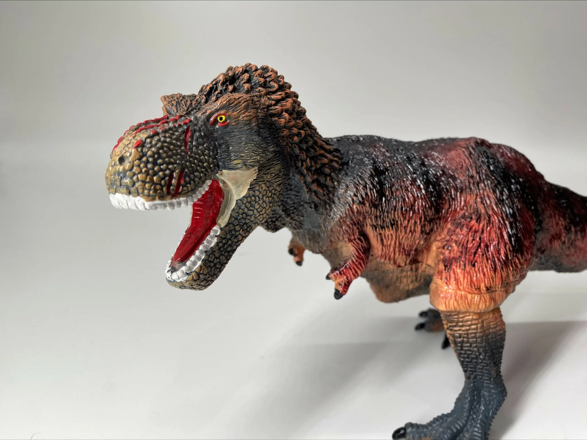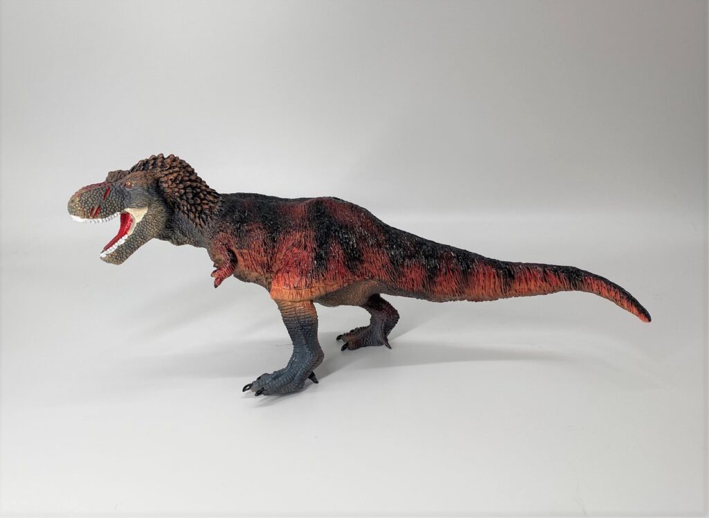 ・珍しい赤と黒の羽毛ティラノサウルスのフィギュア
