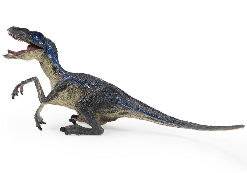 ヴェロキラプトルは、体高1.7m、体長4.5mで体重は136kg。その体の大きさと比べると脳が大きかったため、最も知能の高い恐竜の一種と言われている。陸での動きはすばしっこく足も速い。恐るべき存在であった。2本脚で動きまわり、その速さは自動車と変わらないほどの時速39kmとも言われている。