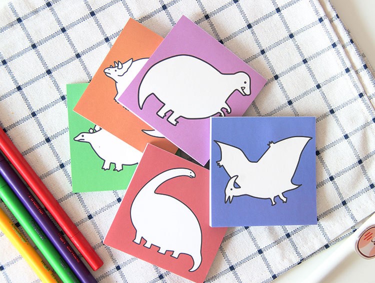 ティラノサウルスや、ステゴサウルスなど、人気の恐竜がゆるかわな絵柄になっていて、使うたびに癒されます♪50枚綴りなため、たっぷり使えるのも嬉しいポイント♪シンプルなデザインなため、書ける場所が多いのも嬉しい!