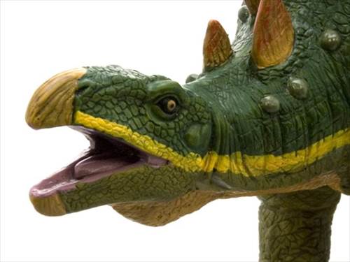 ぱっと見た印象では武器らしきものは持っていないように見えますが、しっかりと自分の身を守る手段はありました。約1メートルほどの長さの4本の角(スパイク)がついたしっぽで、このスパイクを武器にして敵と戦っていたと言われています。この説には証拠もあるので、現在では疑う余地はないとされています。