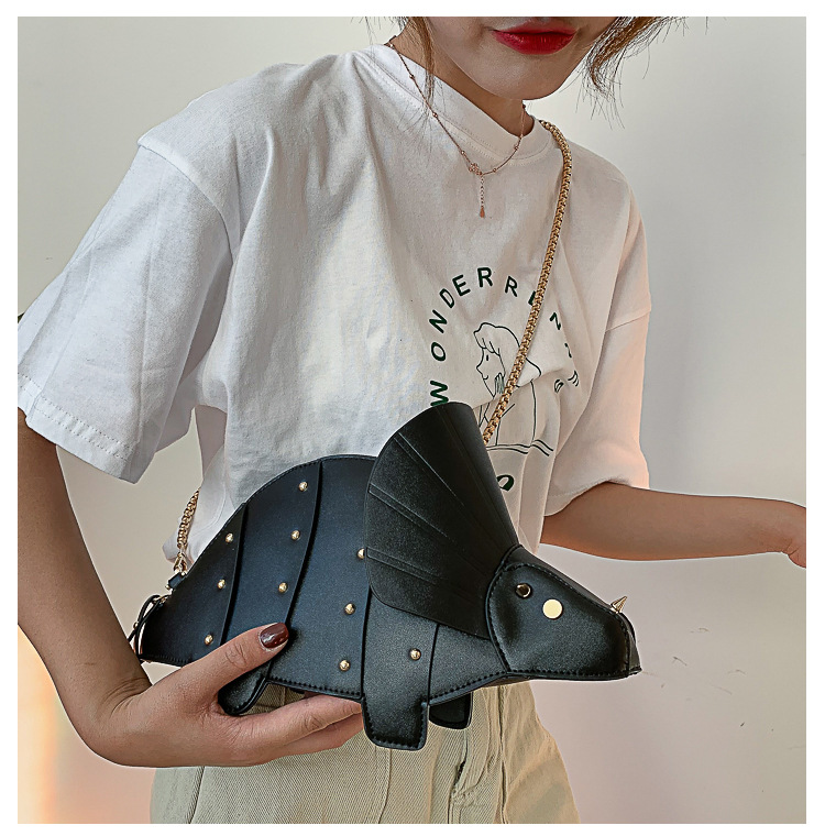 ティラノサウルスと、トリケラトプスがオシャレなショルダーバッグとなって登場しました♪フェイクレザーにゴールドのスタッズが大人可愛く、ゴールドのチェーンが更に可愛さを引き立たせています!ティラノサウルスはピンク、トリケラトプスはブラックとパープルがあり、色合いもとってもオシャレです♪オシャレが好きな恐竜女子にはたまらない一品となっています!このバッグで、ワンランク上のオシャレ上手になれます♪恐竜好きな彼女や、娘さんへのプレゼントにも最適です♪
