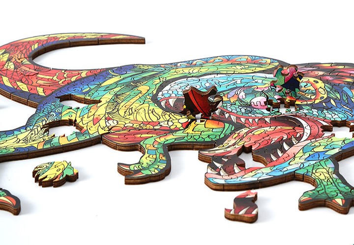 カラフルでアーティスティックな恐竜のパズルは、よーく見ると猫やうさぎ、ゾウ、ライオンなどの形をしたピースが入っている、遊び心いっぱいのパズル。