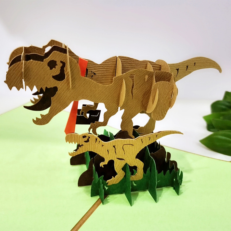 ・開くとティラノサウルスの親子が飛び出す3Dメッセージカード。