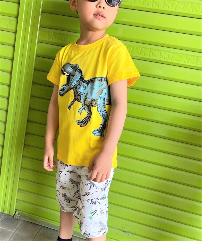 活発な男の子はもちろん、ビビットカラーが女の子にも着ていただけます!恐竜好きなキッズの普段使いにも!
