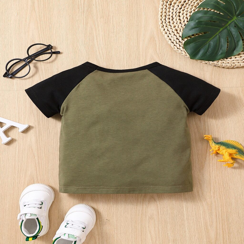 人気No.1の恐竜、ティラノサウルスのシルエットが文字デザインでかっこよくておしゃれなキッズTシャツ。ラグラン袖なので着やすくて、学校、普段着、お出かけ着、公園、お外遊びなどなど大活躍!