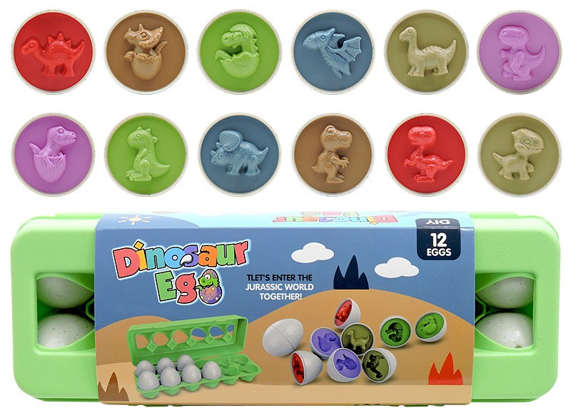 色々な恐竜の形状が12種類あり、バラバラの卵を正しく合わせます。6色に塗り分けられていて色も覚えられる!!