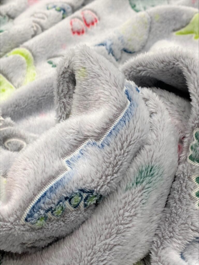 ・カワイイ恐竜のイラストがいっぱい入った夜光ブランケット。
