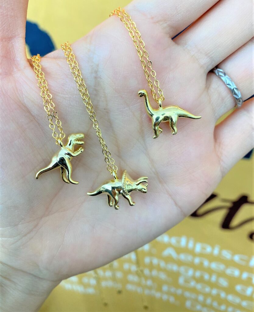 ゴールドチェーンの恐竜ネックレスは、恐竜を普段のファッションにどう取り入れようか悩んでいる恐竜女子にはピッタリのアイテムです♪気品溢れるゴールドカラーは綺麗めファッションにはもちろんのこと、カジュアルなファッションにも取り入れると、オシャレに恐竜好きをアピールすることができます♪様々な場面で使えるのが嬉しいポイント♪