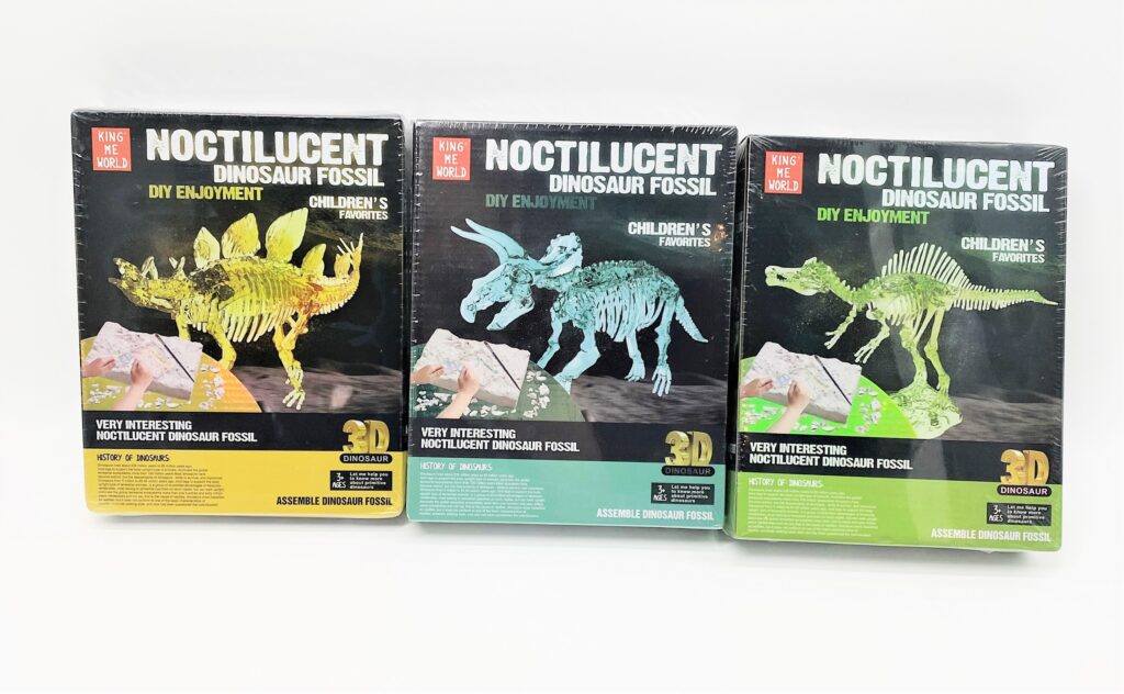 蓄光タイプの化石パーツを組み上げれば、夜光る骨格標本が完成!寝室の置物としても最適です。