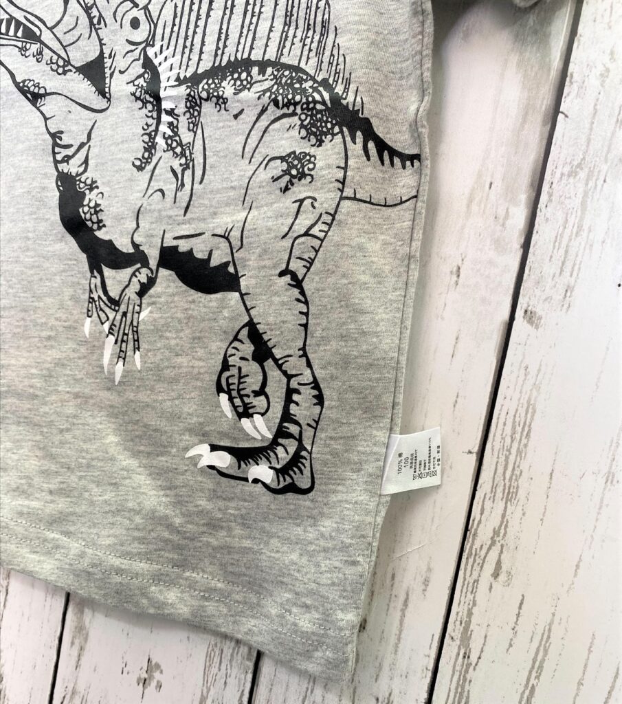 モノトーンの恐竜プリントTシャツで、シンプルながらもスタイリッシュにコーデが決まる1枚です☆
