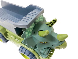 トリケラトプスのトラックです。荷台は本物そっくりに作られています。お子様が公園で砂遊びをするときには最適です。トリケラトプスという名の由来は3本の角を持つ顔という意味で大きな4本足の身体は現在のサイに似ていると言われております。大きさは全長9メートル、体重は12トンの最大級の植生恐竜です。恐竜好きのお子様にとってトリケラトプスのトラックで遊ぶとき想像の世界で恐竜と冒険してみたり、他のフィギュアと戦わせてみたり無限の遊び方出来ます。